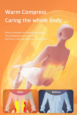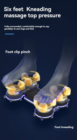 Airbags placed across shoulders, arms, hips, waist, calves, and feet gently compress and release to improve circulation and relieve tension.